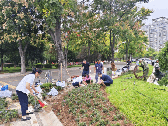 10. 9月18日,武汉校区后勤处全体行政管理人员义务为裸露土地种植花卉,绿化队邱师傅现场义务技术指导。