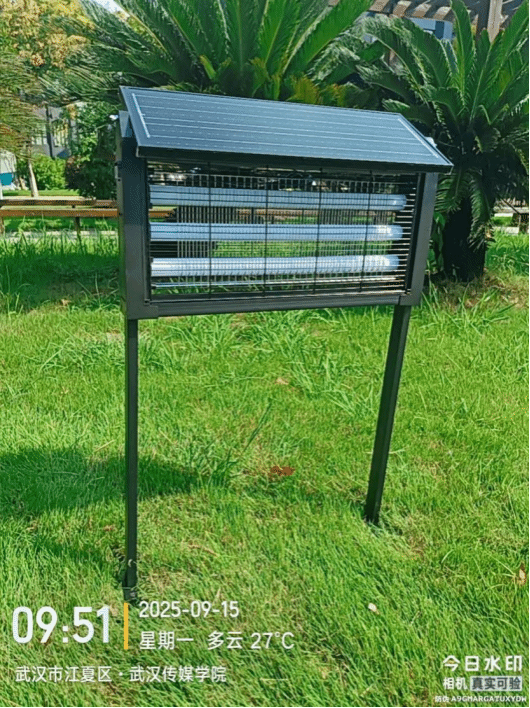 6. 9月16日,应卫生防疫要求,武汉校区物业科在校园草坪区域完成太阳能灭蚊灯专项安装工程。