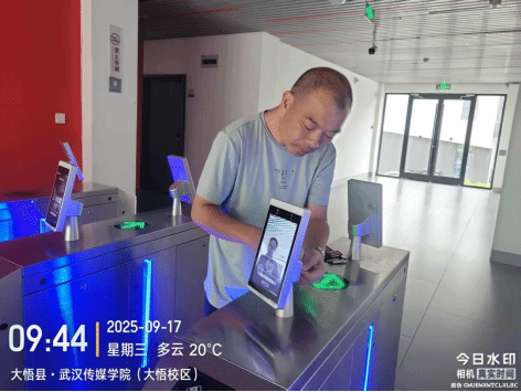 9. 9月17日,大悟校区宿管科,正式启用门禁闸机系统,并调试门禁闸机面板倾斜角度,提高识别效率。