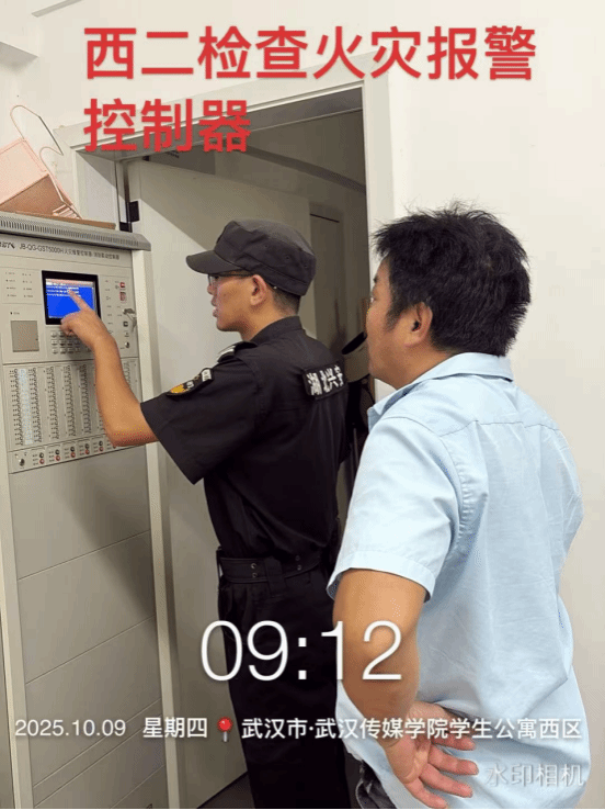 5. 10月9日,武汉校区宿管科协同校保卫处,对各宿舍楼的消防报警控制器进行全面检查。