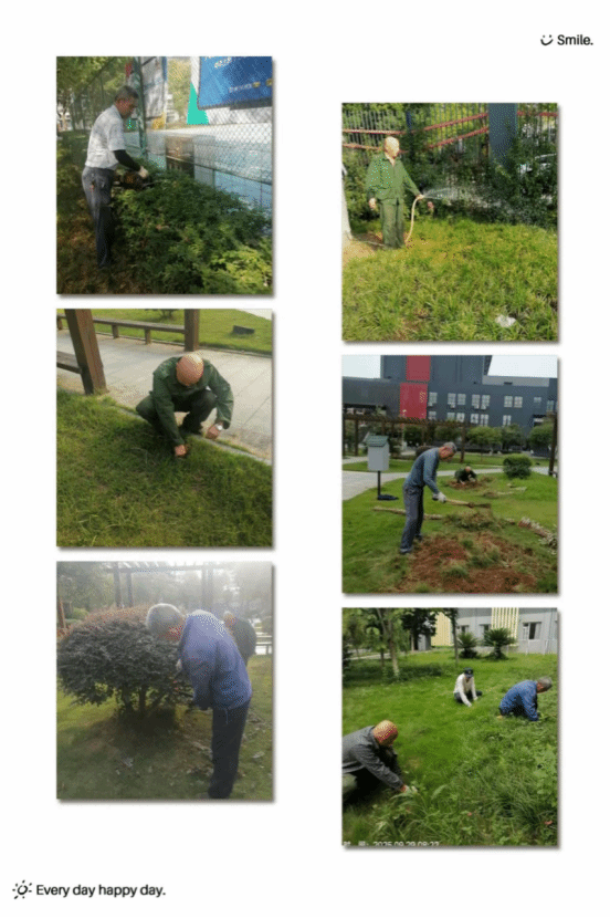 10. 本周,为进一步优化武汉校区的绿化环境,提升校园生态品质,武汉校区绿化队安排专业人员,全面开展了除草、浇水、翻土以及植物造型修剪等一系列绿化养护工作。
