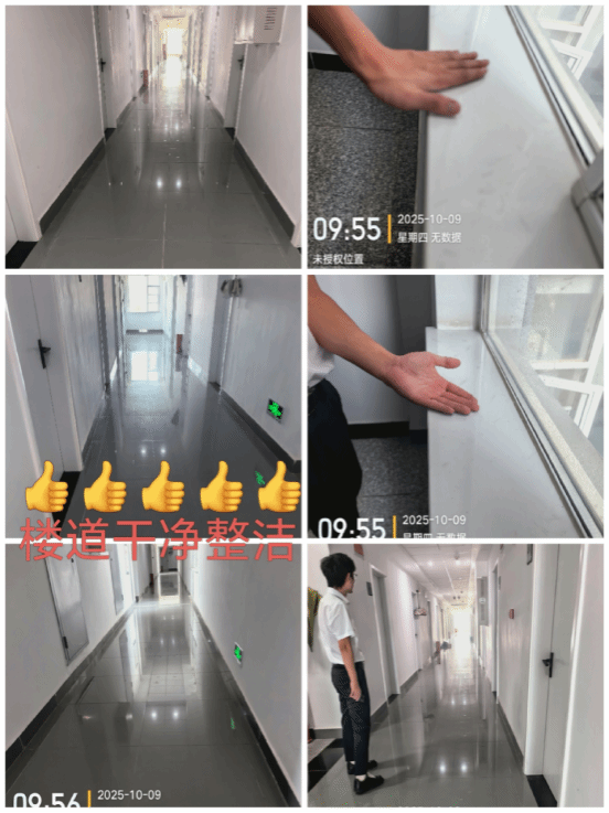 4. 10月9日,武汉校区宿管科联合第三方外包公司负责人,对校区各宿舍楼的卫生情况展开联合检查。