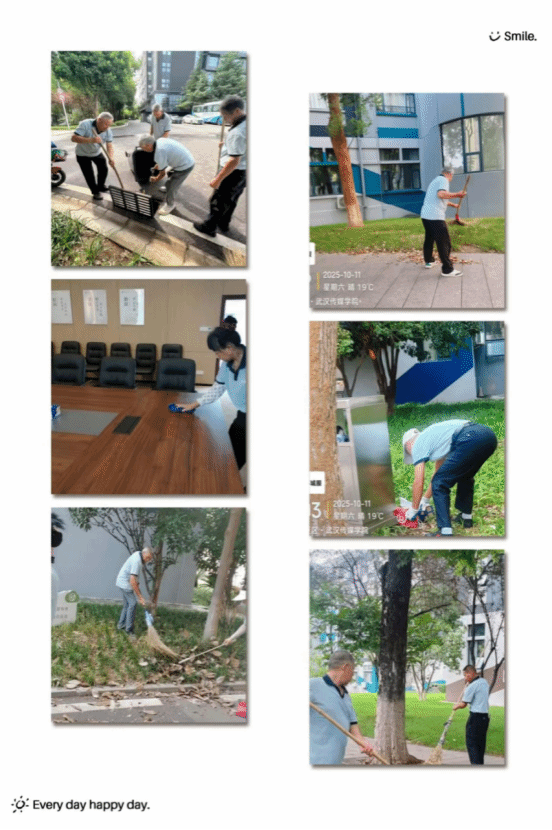 3. 国庆假期期间,当大多数人沉浸在节日的欢乐与休闲之中时,校园的保洁人员始终坚守在各自的工作岗位上,全力维护校园的整洁环境。