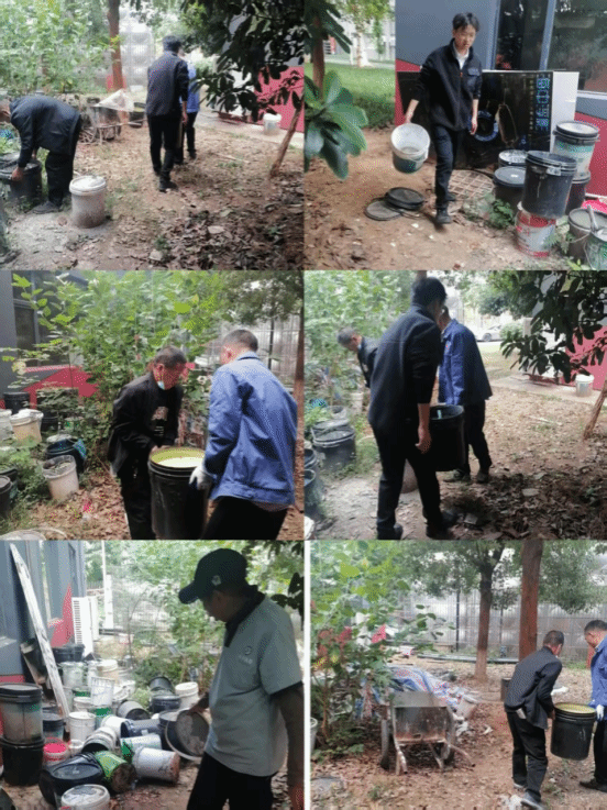 9. 10月15日,为进一步营造整洁、有序的校园环境,武汉校区物业科组织保洁人员,集中对5号宿舍楼周边遗留的塑料桶进行全面规整与清除。