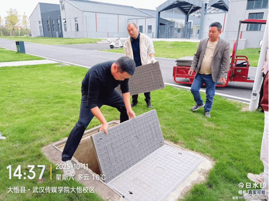 1. 10月11日,大悟校区物业科组织人员对校内破损井盖逐一排查并完成更换,全力消除安全隐患。