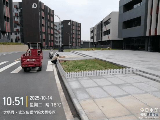 7. 10月14日,为进一步优化校内整体环境,提升校园景观的美观性与协调性,大悟校区物业科组织专业绿化人员增设T3楼门口小花园围栏。