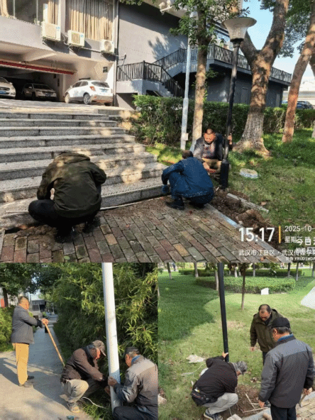 6. 10月22日,武汉校区物业科组织维修队对行政楼至5号教学楼之间区域的路灯展开了全面维修作业。