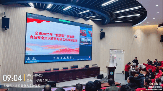 1. 10月20日,孝感市组织召开了2025年度食品安全知识宣贯培训工作视频会议。大悟校区办公室陈老师以及食堂周经理参加了此次会议。