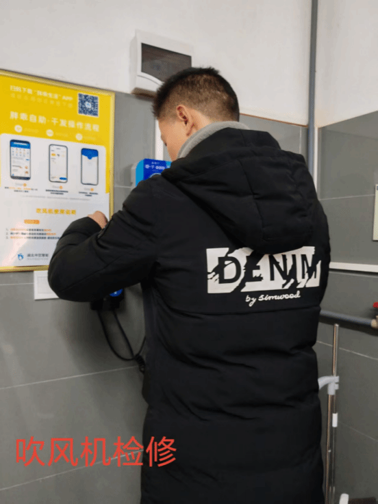 8. 10月23日,为切实保障学生生活设施的正常使用与安全运行,武汉校区宿管科联系第三方专业公司,对各楼栋的吹风机展开全面检修工作。