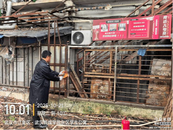 5. 10月21日-24日,为切实强化校园消防安全管理,有效消除消防安全隐患,武汉校区宿管科组织各楼栋长,针对宿舍楼内违规占用消防通道的情况开展专项检查。