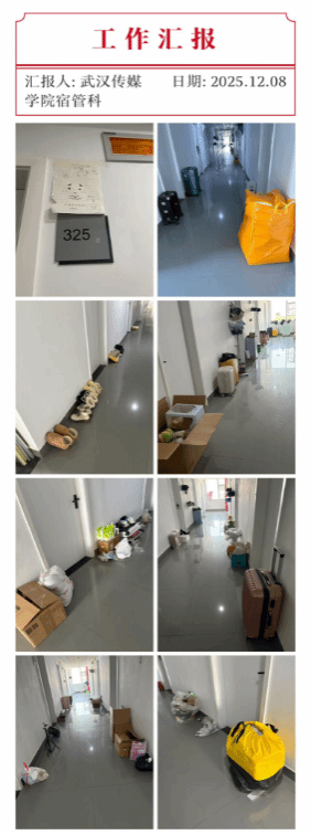 2. 12月8日-12日,武汉校区宿管科组织各楼栋长开展消防通道专项整治行动。