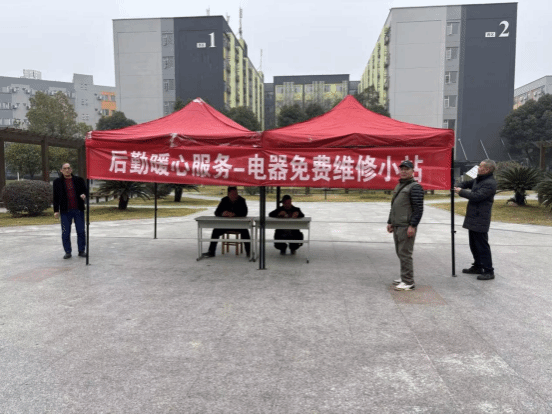 10. 12月12日,武汉校区物业科组织维修团队,于博雅园广场搭建红色服务帐篷,开设“后勤暖心服务——电器免费维修小站”,为全校师生提供公益维修服务。