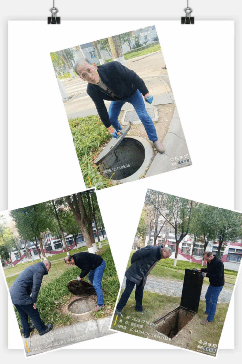 2. 12月16日,武汉校区物业科组织维修人员,对校内管网设施可能存在的隐患展开全面排查。