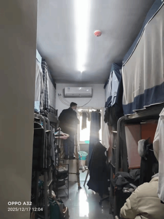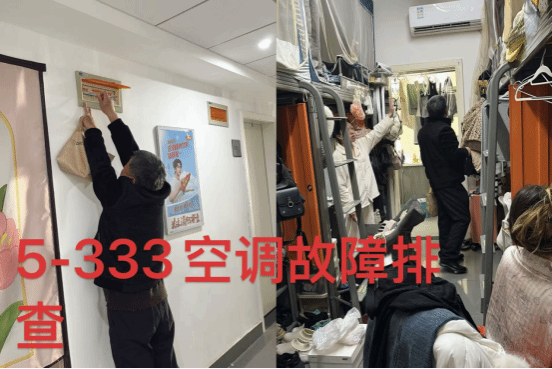 6. 12月18日,武汉校区宿管科楼长对学生报修的空调故障问题,展开排查工作。