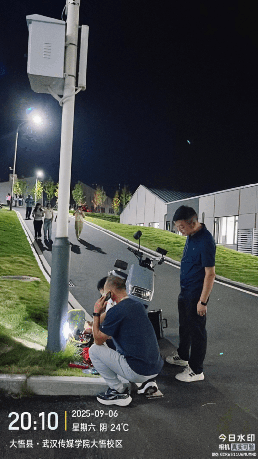 夜幕降临,迎新工作仍在继续。维修组师傅随时待命,一接到照明故障报修便立即赶往现场。他们熟练地排查线路、迅速修复故障。当灯光再次亮起,照亮走廊也照亮人们安心的笑容——他们默默守护着校园的明亮与温暖。