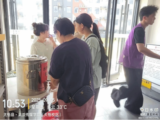 虽已入秋,9月5日气温仍高达36℃。为消解新生与家长旅途的燥热与疲惫,后勤处在每栋新生宿舍楼下设立“清凉驿站”,免费提供冰镇酸梅汤。一杯杯清凉的饮品,不仅缓解了身体的炎热,更抚平了初来乍到的不安。许多学生和家长接过饮料时露出惊喜的笑容,纷纷为学校的贴心服务“点赞”。