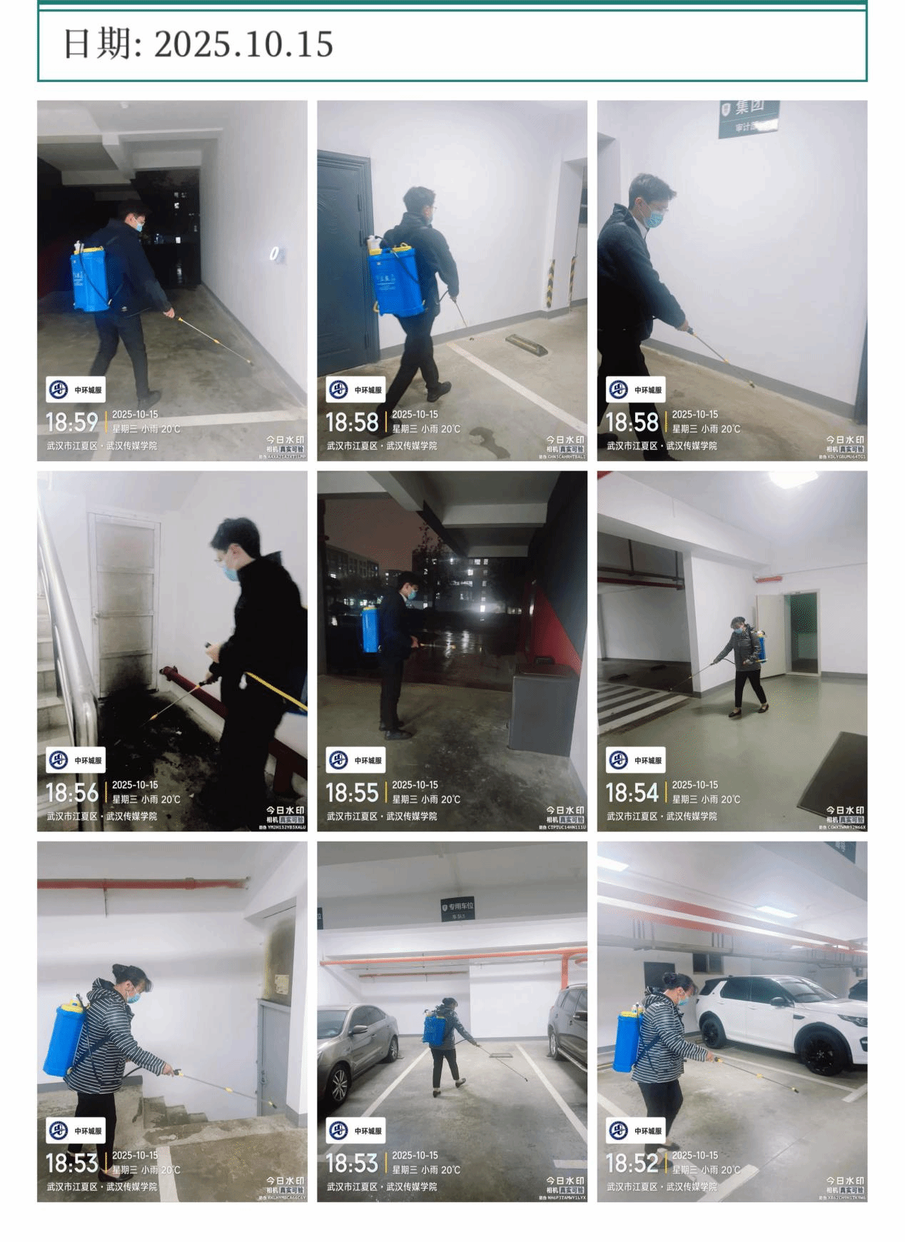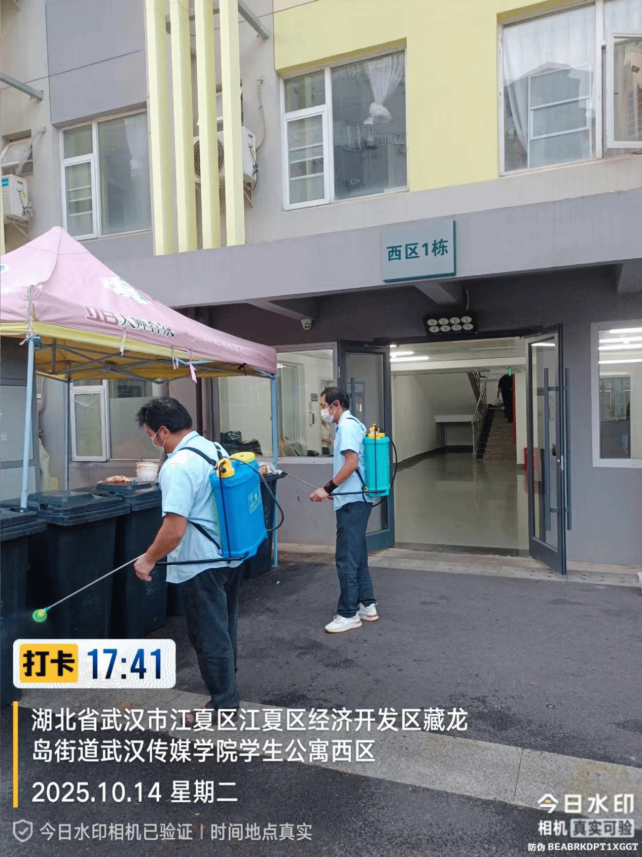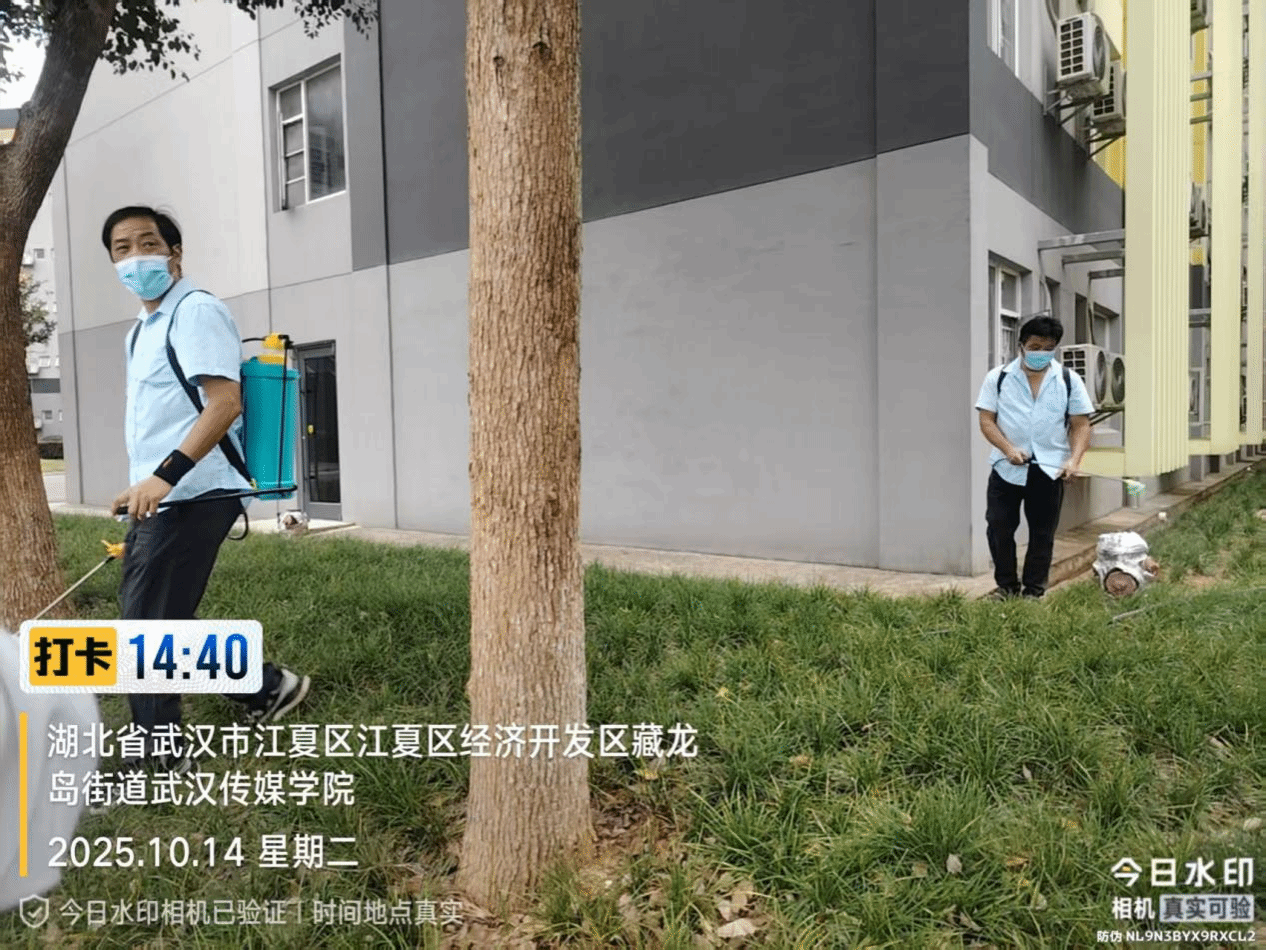 环境清理与消杀“回头看”。 考虑到长假期间部分场所可能再度出现积水或成为蚊虫新的孳生点,后勤处在师生集中返校前,组织了一次快速的“回头看”环境整治行动。重点对教学楼天台、宿舍阳台、闲置场地等区域进行积水清理,再次对校园进行一轮强化消杀,确保环境安全万无一失。属地卫生部门也多次派人到我校进行了蚊媒监测。