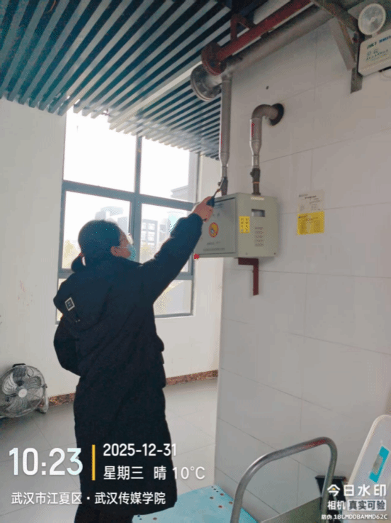 会后,两校区后勤系统迅速响应,立即组成联合检查小组,深入校园配电室、水泵房、锅炉房、食堂后厨、食品仓库、学生公寓、教学楼、图书馆、体育场馆等重点区域和人员密集场所,开展拉网式安全隐患排查。检查人员对照标准仔细查验,对设施状态、记录台账、管理细节进行逐一核对,对现场发现的部分疏散标识不清、个别插座松动、常闭式防火门未关闭等问题进行了记录,并组织人员现场整改。