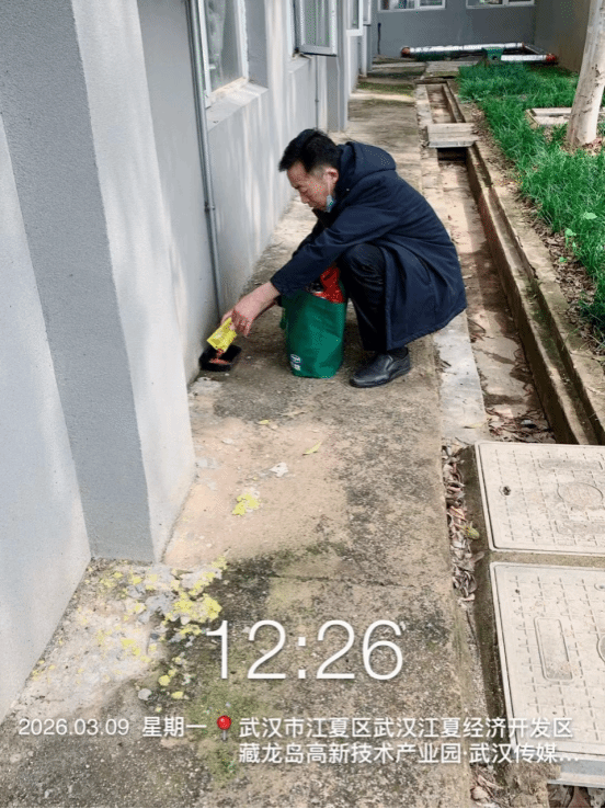 5. 3月9日,武汉校区宿管科联系第三方专业公司,对宿舍楼四周开展老鼠防治工作。