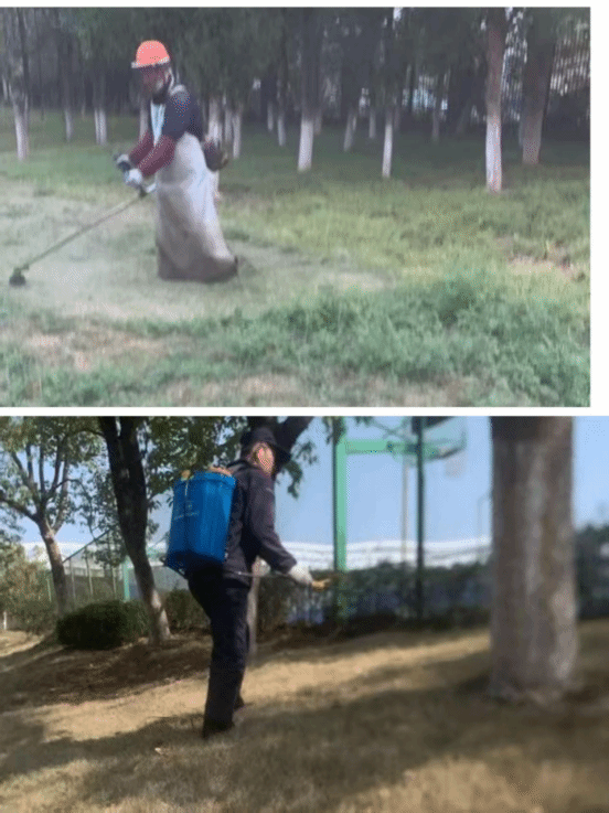 15. 本周,大悟校区绿化团队依据校园绿化养护计划,有序开展工作,对校内灌木、草坪进行修剪、拔草以及施肥作业。