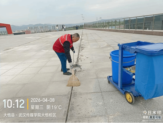 8. 4月8日,为保证排水顺畅,大悟校区物业科组织保洁员工提前清理了T2大平层排水缝。