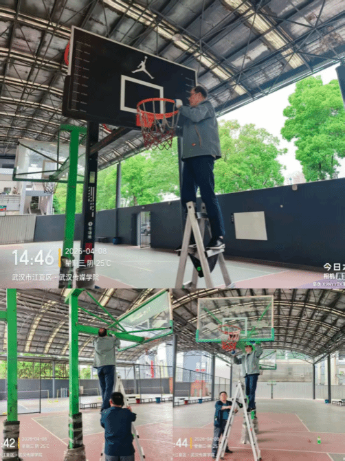 7. 4月8日,武汉校区物业科维修队对即将举办篮球赛的场地及配套设施全面检查维修。