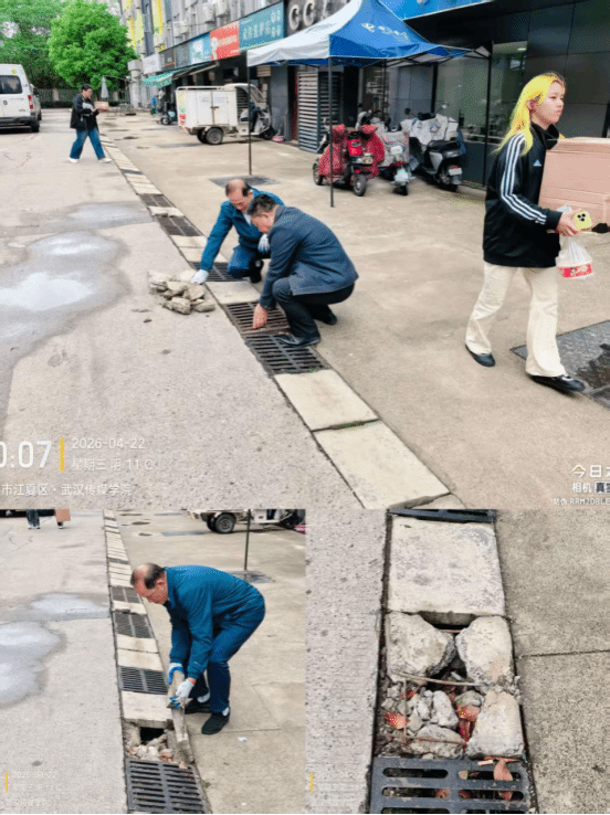 9. 4月22日,武汉校区物业科组织维修人员对西四商业街破损、松动的沟盖板进行拆除、清理并更换新盖板。