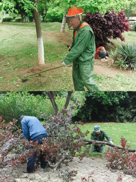 14. 本周,武汉校区绿化队组织人员对校园草坪进行了修剪作业,同时针对近期大风天气造成的断枝问题进行了集中清理、整理。