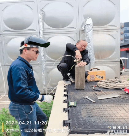7. 4月21日,大悟校区物业科在日常巡查中发现自来水水箱存在漏渗水问题,物业科紧急调配维修人员立即开展焊补维修作业。