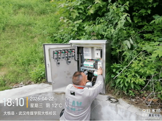 10. 4月22日,大悟校区物业科水电维修师傅对校内操场高杆灯及爱心湖周边路灯展开定时调试工作,合理管控照明运行时间,有效节约能耗。