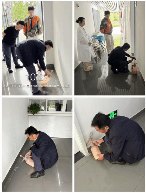 1. 4月20日,武汉校区宿管科委托第三方专业人员对学生宿舍进行白蚁防治。