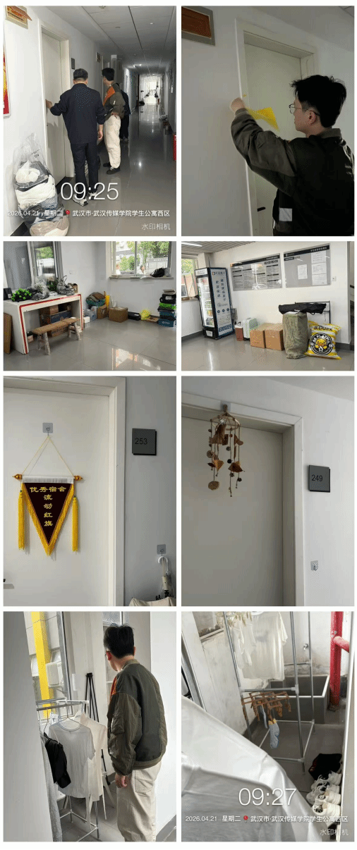 6. 4月21日,武汉校区宿管科楼长携手第三方中环城市服务公司,针对宿舍占用消防通道问题共同开展专项整治行动。